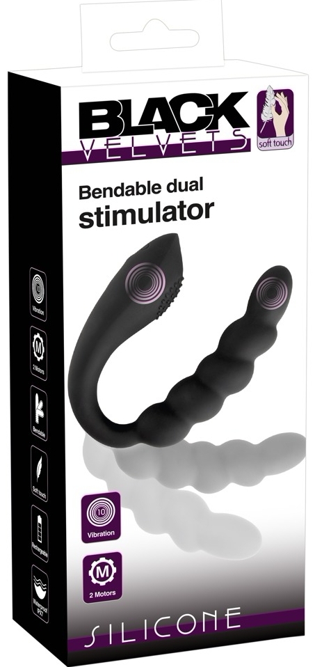 Bendable Dual Stimulator de la Negru Velvets combină două capete vibrante într-un design flexibil, pentru stârnire internă și externă simultană. Un punct final tip bile este conceput pentru inserție, iar celălalt pentru stimulare lay-on; flexibilitatea permite poziționări variate și adaptare precisă.