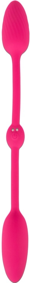 Două mini vibratoare unite printr-o bandă din silicon pentru stârnire internă și externă. Control separat cu telecomandă până la 15 m. 2 x 10 moduri, cu acumulator USB, rezistent la apă. Include cablu USB și baterie pentru telecomandă.