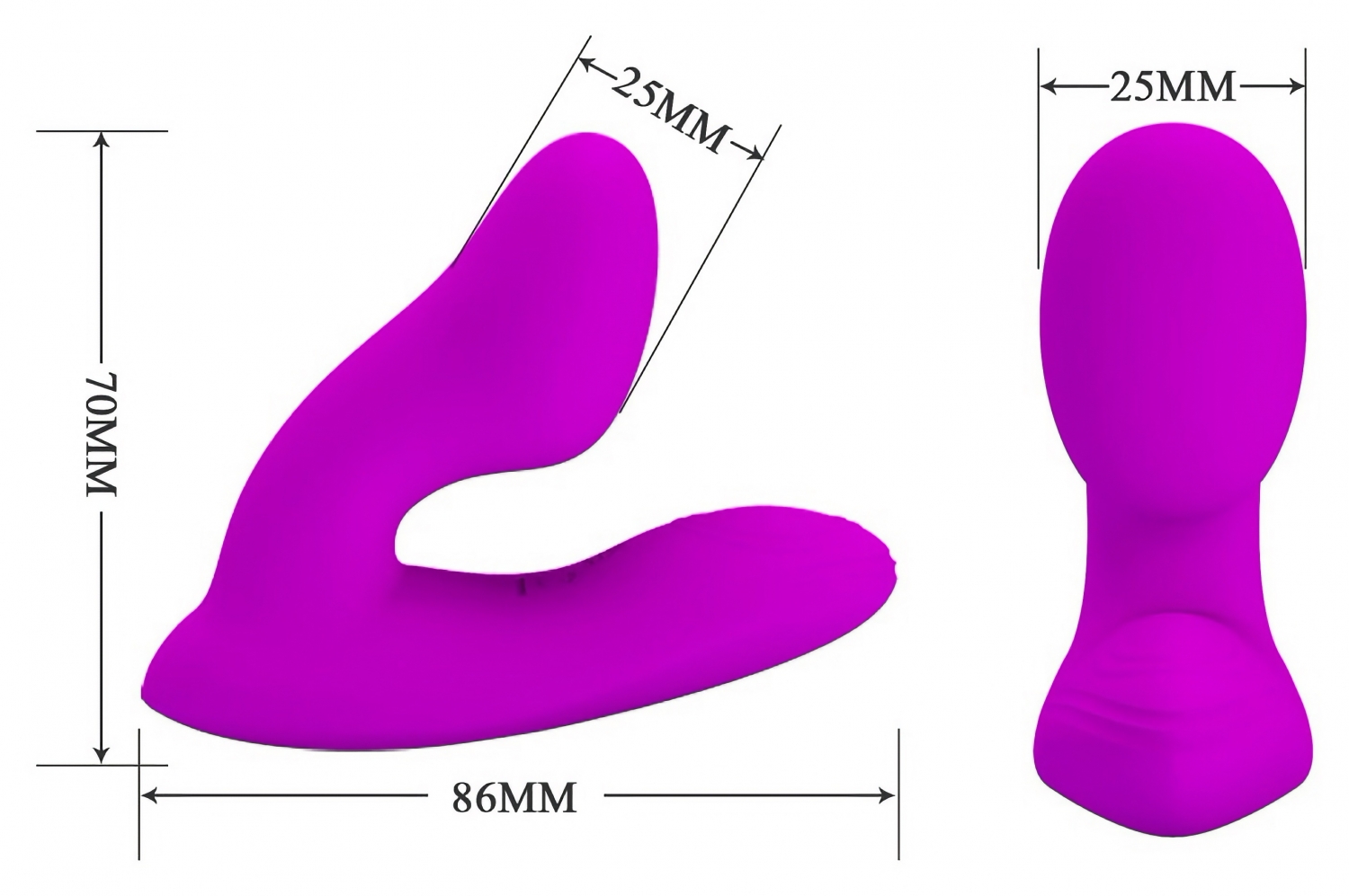 Pretty Love Melvin combină stârnirea internă și externă într-un stil compact și discret. Axul curbat vizează punctul G, iar masatorul dedicat acordă stimulare clitoridiană separată.