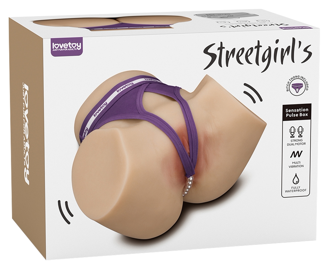 LoveToy Streetgirls Sensation Pulse amestecă două motoare și modul Sensation Pulse pentru tremurări dominante și variate. Deschidere modelată cu textură internă detaliată, carcasă rezistentă la apă și spălare simplă, scutit de demontare. Conține bikini cu ață Boudoir.