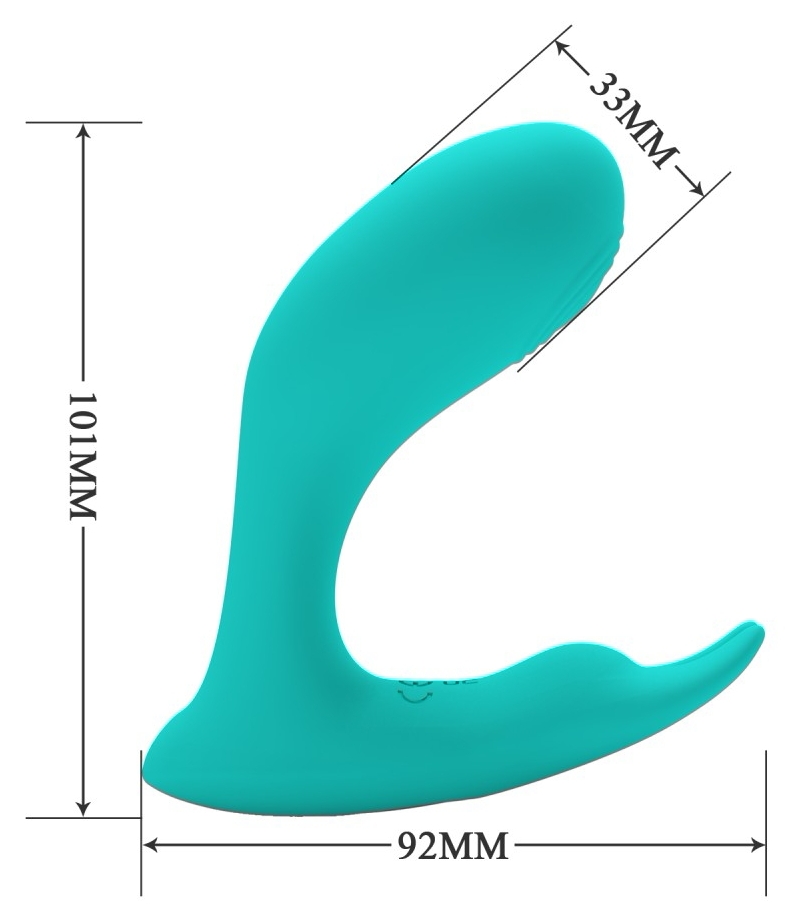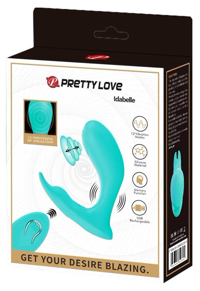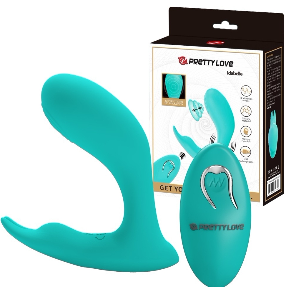Pretty Love Idabelle Green este un stimulator purtabil, proiectat pentru stârnire duală: cap bulbous pentru punctul G și porțiunea externă pentru clitoris. Designul ergonomic se modelează pe corp pentru confort și precizie, iar forma compactă îl face discret la purtare.
