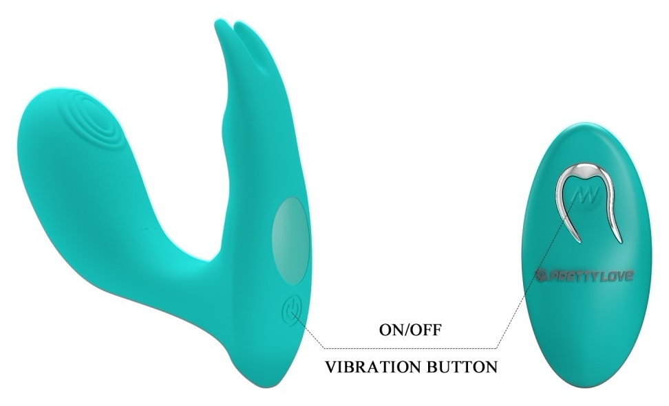 Vibrator purtabil Pretty Love Idabelle Green, control wireless prin telecomandă. Cap bulbous pentru stimulare punctuală a punctului G și fracțiune externă pentru clitoris. Două motoare, 12 chipuri de vibrație și 12 setări de pulsație, memorie pentru combinația preferată. Zdravăn la apă.