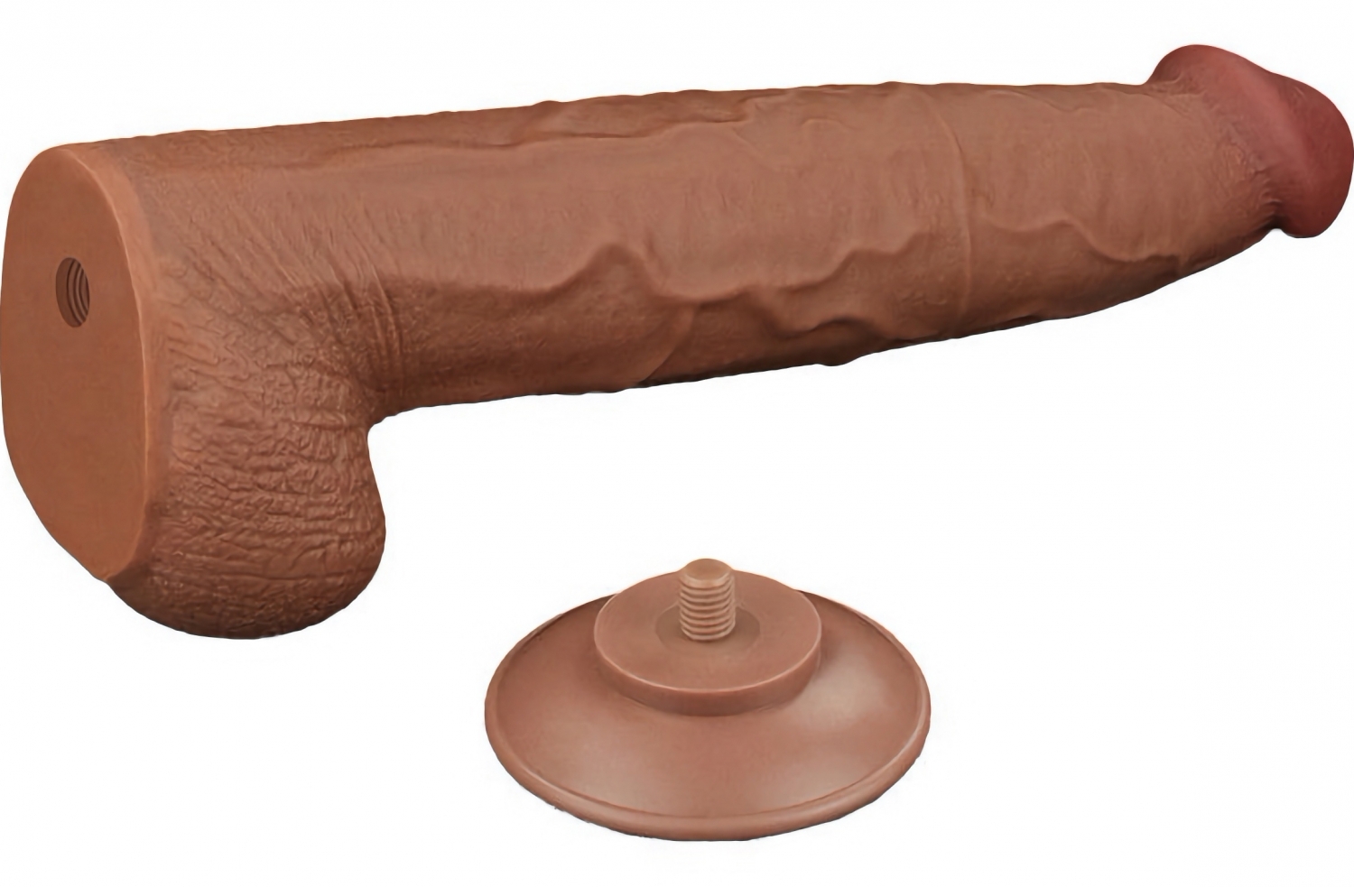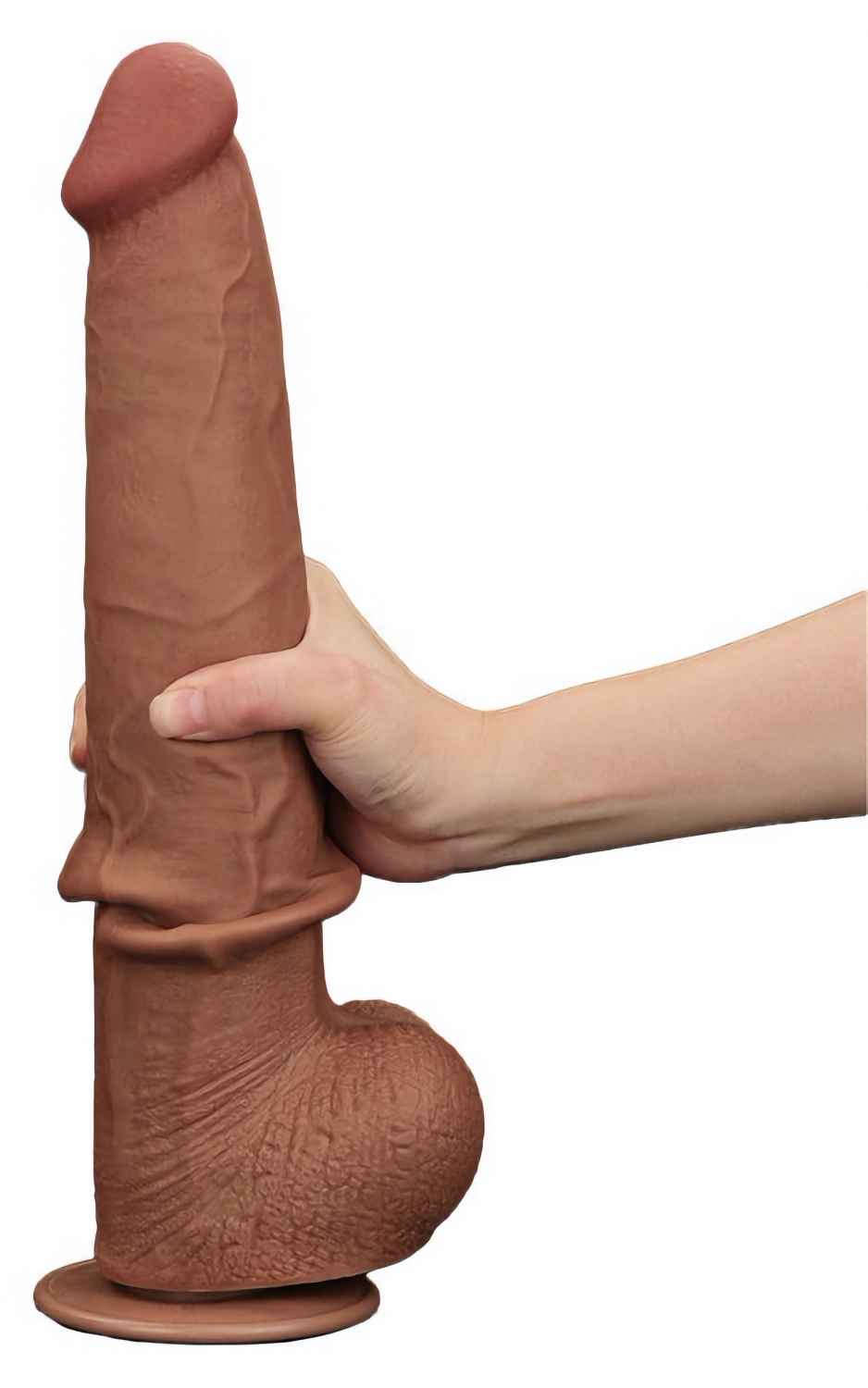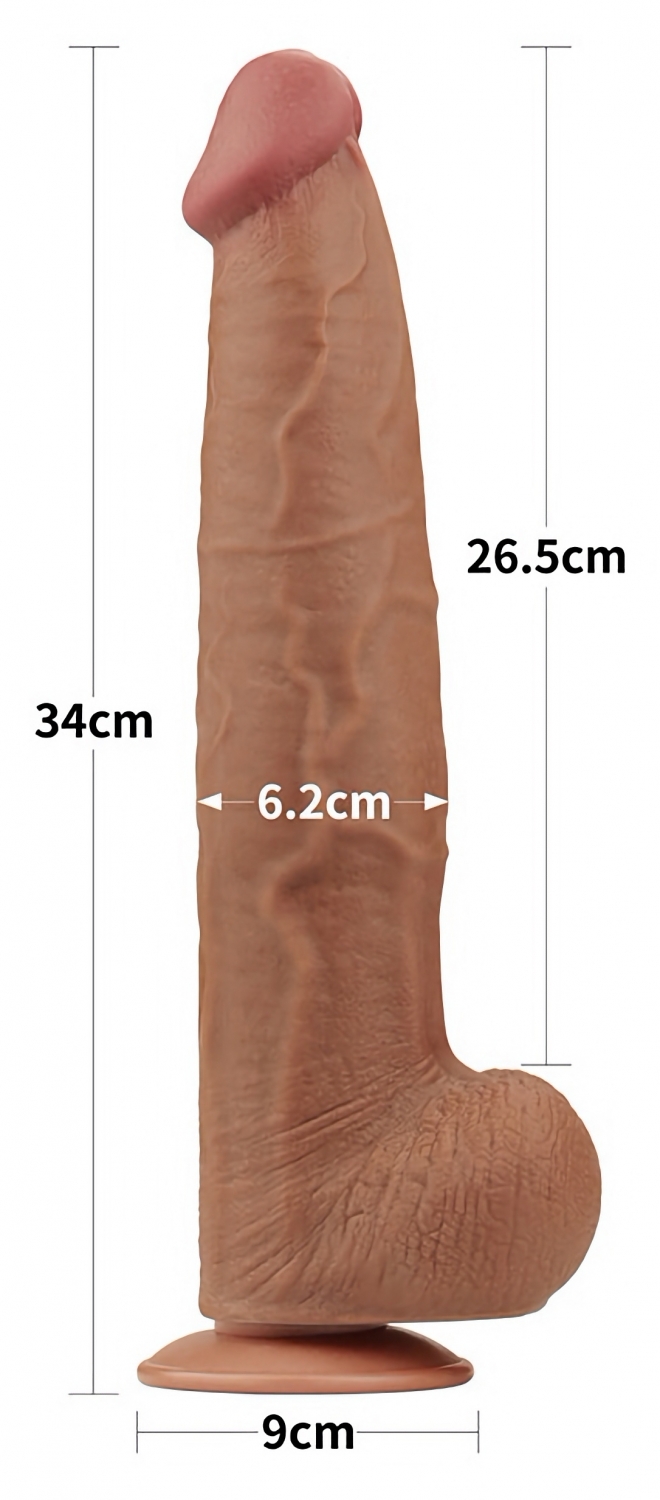 Dildo realist LoveToy Sliding Skin, 34 cm, exterior moale și miez ferm din TPE dual-layer. Pompă detașabilă pentru stabilire hands-free, flexibil și fără greutate de curățat. Lungime inserabilă 26,5 cm; calibru maxim 6,2 cm. Utilizați lubrifianți pe bază de apă.