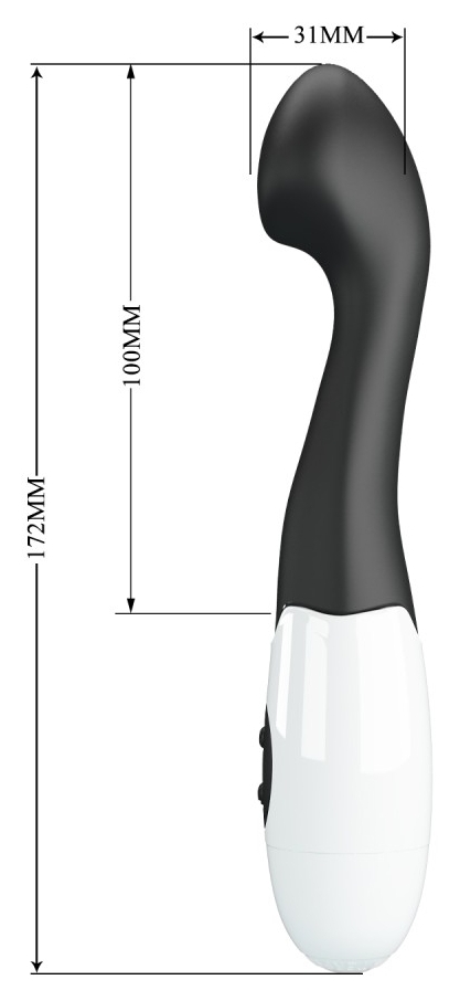 Vibrator compact din silicon moale, cu cap ușor bombat pentru stimulare localizată a punctului G. Oferă 30 maniere de vibrație controlate prin butoane intuitive. Robust la apă, alimentat cu 2 x AAA, perfect pentru păstrare discretă.