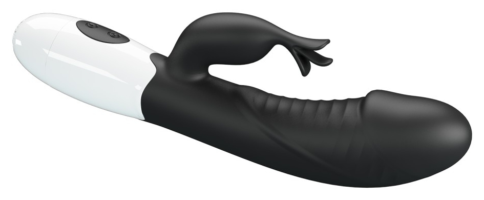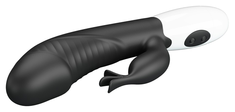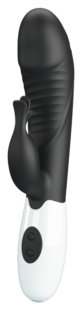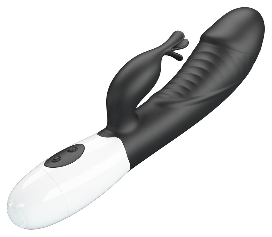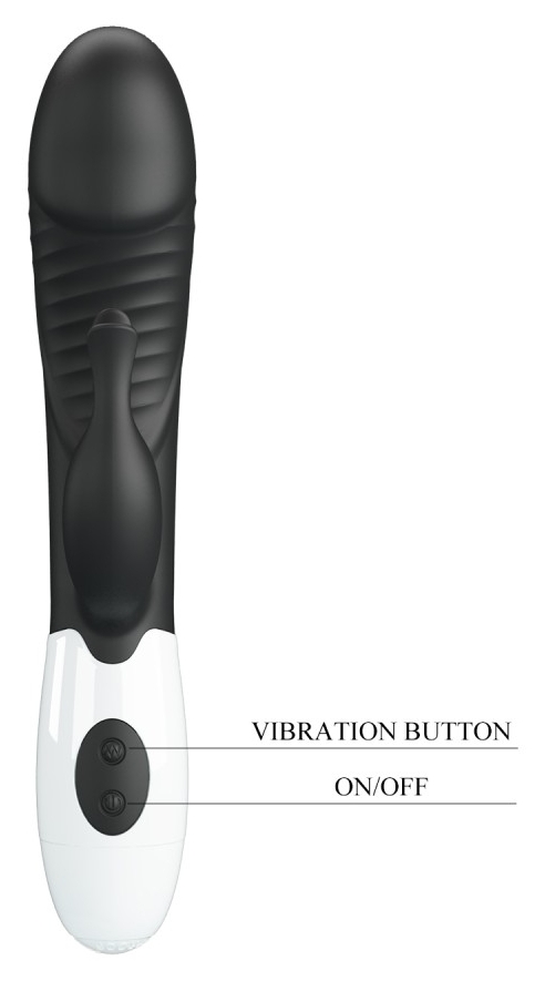 Stimulator dublu Pretty Love Rasmussen: braț maleabil ce menține raportul cu clitorisul și cap pentru punctul G. 30 moduri de vibrație, controale intuitive, alimentare cu 2 baterii AAA pentru utilizare discretă.