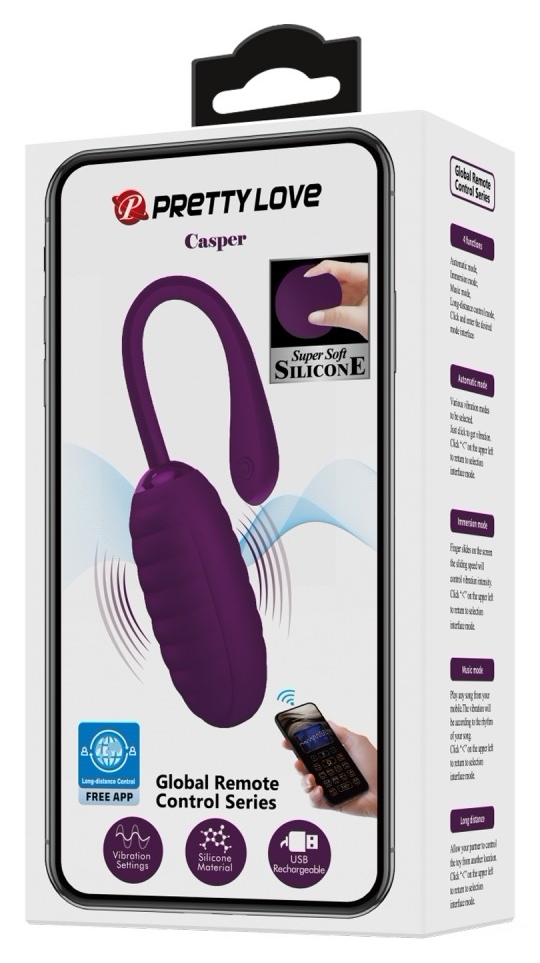 Pretty Love Casper Purple este un ou stimulator compact, ergonomic și discret, conceput pentru exploatare ușoară și hands-free. Are o suprafață din silicon moale și un corp rezistent, simplu de curățat.