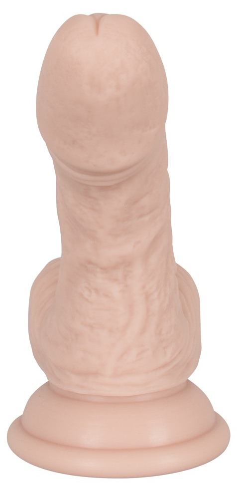 Dildo concret din silicon, moale și flexibil, cu ventuză la bază pentru stabilire pe suprafețe netede. Lungime totală 14,5 cm, diametru max. 3,3 cm. Textură cu vene pentru o senzație naturală.