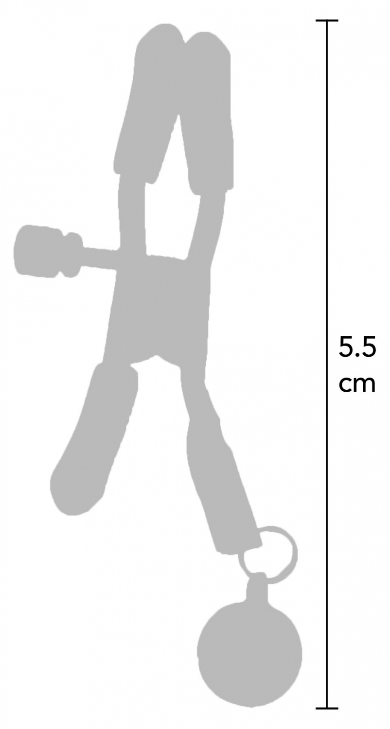 Clești pentru mameloane ce se pot ajusta și strânge atât cât îți dorești. Atașați se găsesc doi mici clopoței.