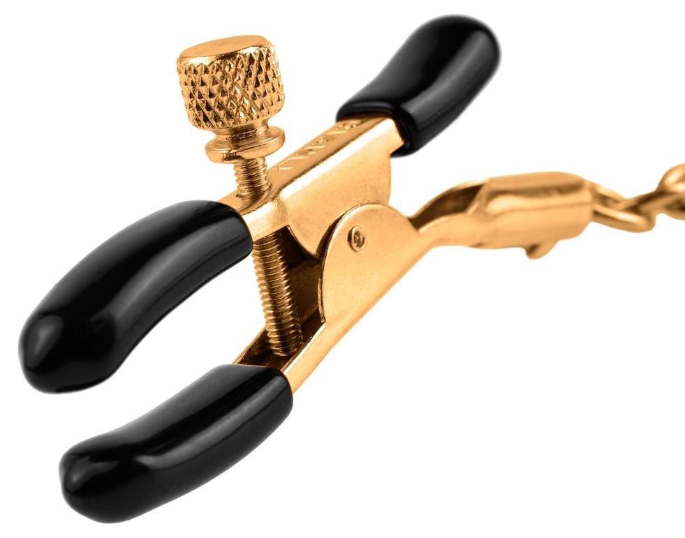Clemele pentru Sfârcuri Fetish Fantezie Gold sunt create pentru plăcerea ei și pentru fanteziile lui. Acoperite cu garnituri din cauciuc moale, pentru confortul dumneavoastră, clemele, sunt perfecte pentru începători. Cantitatea de presiune care este aplicată sfârcurilor, este reglabilă, se rotește șurubul până la poziția dorită, lăsați clemele să vă stimuleze sfârcurile pentru o senzație incredibilă!