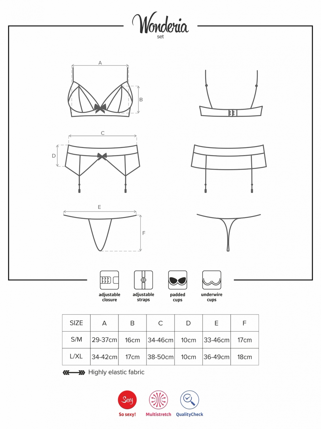 Set Obsessive Wonderia închis la culoare este un articol de lenjerie admirabilă și nemaivăzut de încântătoare, creată și produsă de valorosul brand de lenjerie Obsessive din Polonia.