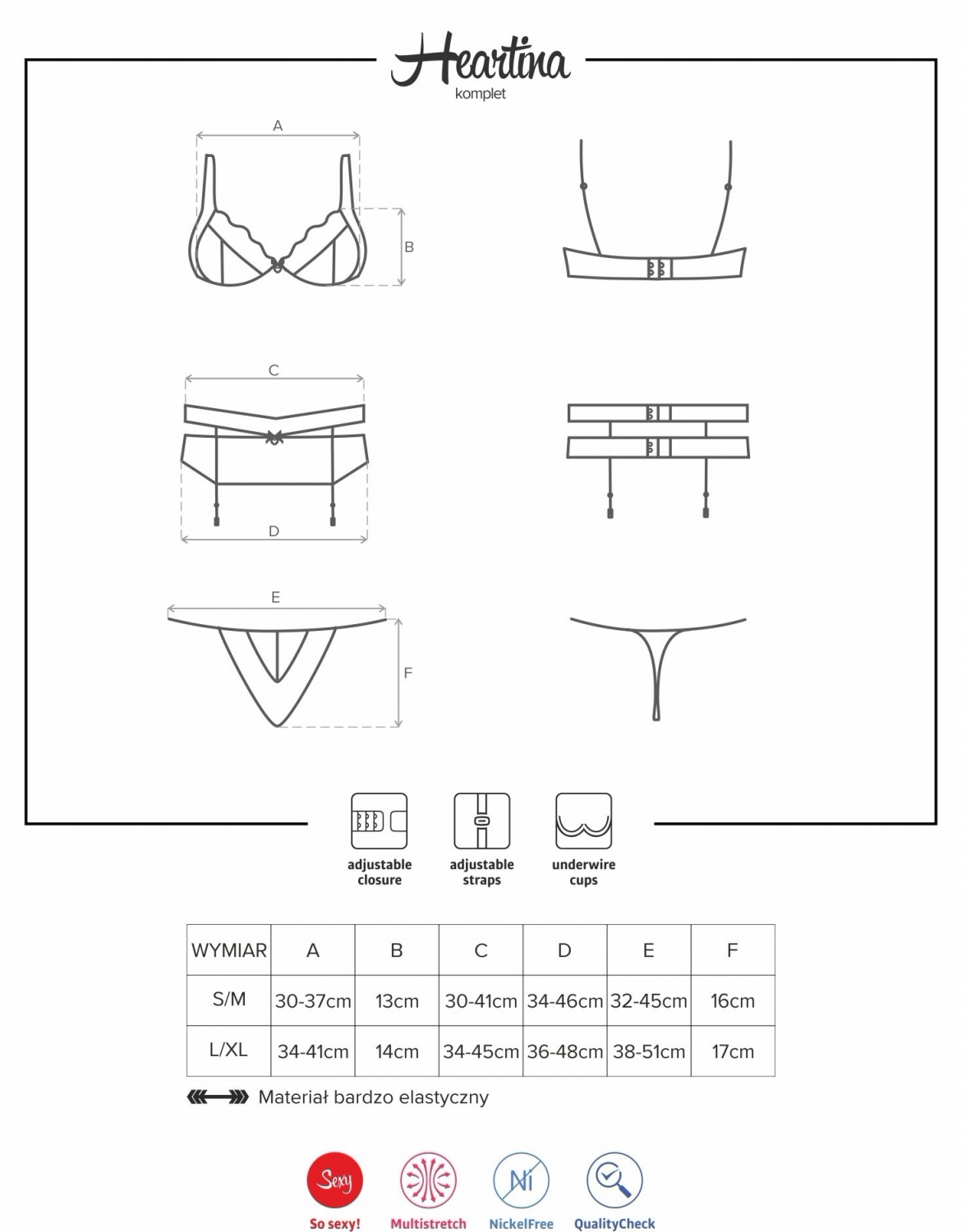 Set Obsessive Heartina Roșu este un articol de lenjerie uimitoare și foarte plăcută, desenată și produsă de distinsul brand de lenjerie Obsessive din Polonia.