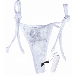 Ascuns discret în interiorul acestui chiloțel, se află un ou vibrator, impermeabil, acționat de o tele-comandă fără fir.