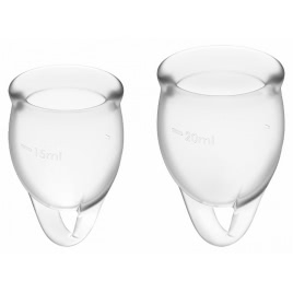 Set de 2 Cupe menstruale de la Satisfyer. Sunt din silicon, agreabile la atingere, cu capacitatea de 15ml și 20ml. Sunt confortabile și ușor de utilizat.